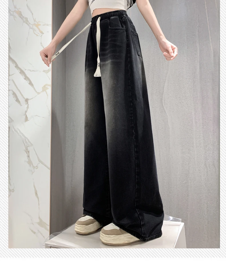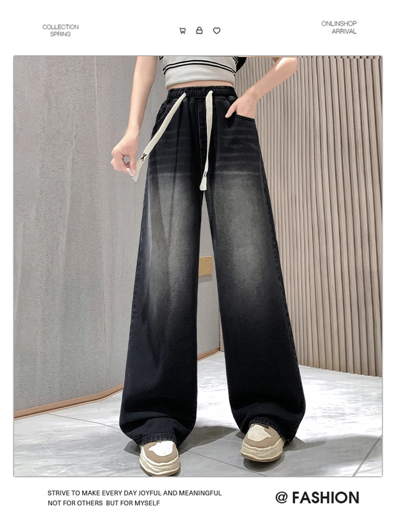 High Elastic Wasit Plus Size Jeans For Women 2024 Autumn New Arrival Full Length Black Jeans Woman Streetwear Casual Denim Pants